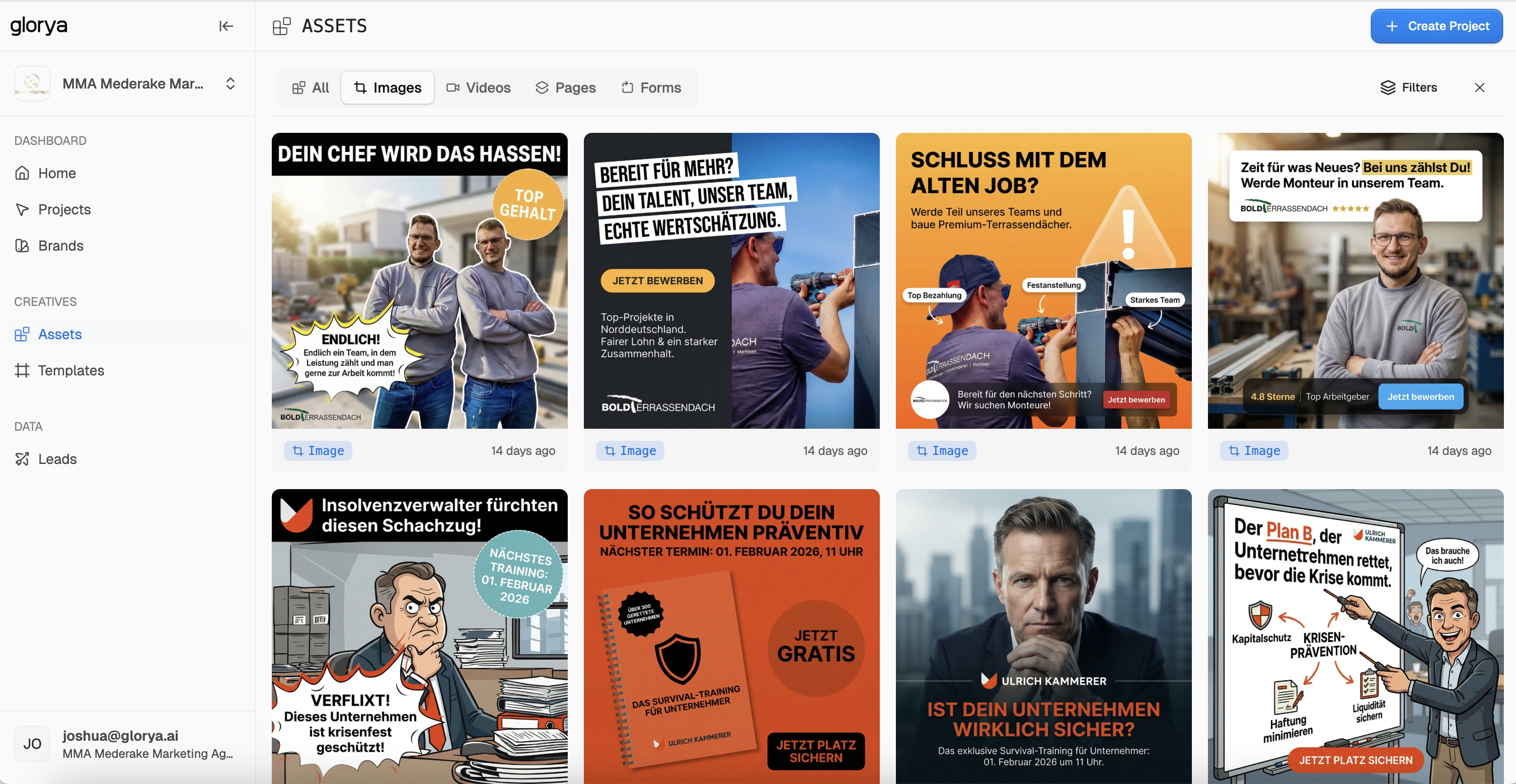 Ich hab auf der Landingpage eine CTR Conversion von über 40% der Besucher, welche auf den Button klicken! Beste AD ist mittlerweile auch eine Glorya generierte!